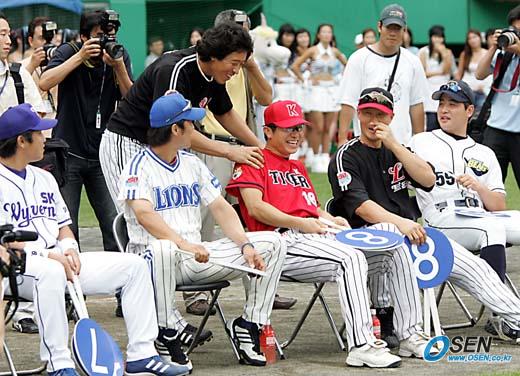 16일 인천 문학구장에서 벌어진 2005 삼성 PAVV 프로야구 올스타전에 앞서 벌어진 치어리더 경연 대회 중 LG의 이병규가 심사위원으로 나온 기아 김종국의 어깨를 주물러 주며 LG 치어리더에게 점수를 많이 달라고 부탁하고 있다./인천=손용호 기자 spjj@osen.co.kr [Copyright ⓒ OSEN(www.osen.co.kr) 무단전재 및 재배포 금지]