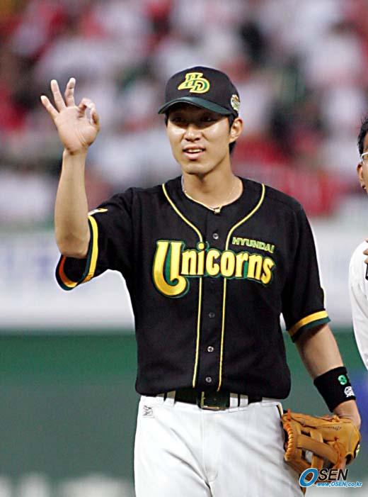 16일 인천 문학구장에서 벌어진 2005 삼성 PAVV 프로야구 올스타전 6회 종료 후 열린 야수들의 스피드 킹 대회에서 현대의 정성훈이 시속 152km라는 믿기지 않는 스피드를 기록하며 1위를 차지했다. 정성훈이 기록이 공인되냐며 측정자게게 물어보고 있다. 2위는 144km를 기록한 이종범. /인천=손용호 기자 spjj@osen.co.kr [Copyright ⓒ OSEN(www.osen.co.kr) 무단전재 및 재배포 금지]