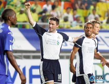 잉글랜드 프리미어리그 토튼햄 핫스퍼가 '에이스' 로비 킨의 활약으로 1차전서 스페인 프리메라리가 레알 소시에다드에 승리를 거둔 남아프리카공화국 선다운스 FC의 상승세를 꺾었다. 2004∼2005 시즌 잉글랜드 프리미어리그 9위 토튼햄 핫스퍼는 18일 수원 월드컵경기장에서 열린 피스컵 2005 코리아 B조 예선 2차전에서 킨이 선제골과 승리에 쐐기를 박는 추가골을 터뜨린 데 힘입어 선다운스를 3-1로 제압했다. 경기 초반에는 토튼햄과 선다운스가 슈팅을 주고 받았고 결정적인 득점 찬스에서 상대 골키퍼의 선방이 이어지며 팽팽한 긴장이 계속됐다. 그러나 역시 강팀은 결정적인 순간에서 강했고 이러한 긴장을 깬 것은 다름아닌 토튼햄의 스타 킨이었다. 전반 33분 오프사이드 트랩을 단숨히 무너뜨린 킨이 선다운스 골키퍼 브라이언 발로이와 1대1로 맞서 골로 연결시켰다. 킨은 전반 40분에도 골키퍼를 제치고 슈팅을 날렸으나 선다운스의 벤슨 므롱고가 걷어내 아쉬움을 남겼다. 전반을 1-0으로 앞선 토튼햄은 후반 시작과 동시에 선다운스 망코바 은웬야에게 슛을 내주는 등 세 차례의 위기를 맞았으나 이를 잘 넘겼고 오히려 추가골을 터뜨렸다. 후반 6분 오스카 데 파울라의 오른쪽 측면 돌파에 이은 크로스가 선다운스 수비수를 막고 흐라자 이를 프레드릭 카누테가 오른발 슛으로 침착하게 득점을 성공시켰다. 또 후반 12분에는 카누테의 발을 맞고 흐른 볼을 선제골의 주인공인 킨이 잡아 팀의 세 번째 골이자 자신의 두번째 골을 성공시켰다. 킨은 후반 29분에도 골키퍼와 1대1로 맞서 해트트릭의 기회를 맞았지만 아쉽게도 슛이 골 포스트를 튕겨 무위에 그쳤다. 0-3으로 뒤진 선다운스는 후반 33분 레라토 차방구의 중거리슛으로 1점을 따라붙은 뒤 후반 35분 차방구의 슈팅, 후반 36분 피터 은들로부, 후반 40분 졸리 갓프레이 사풀라의 슈팅이 계속 이어져 맹추격전을 펼쳤지만 토튼햄 골키퍼 라덱 체르니의 잇단 선방으로 더 이상의 추격에 실패했다. 수원=박상현 기자 tankpark@osen.co.kr [Copyright ⓒ OSEN(www.osen.co.kr) 무단전재 및 재배포 금지]