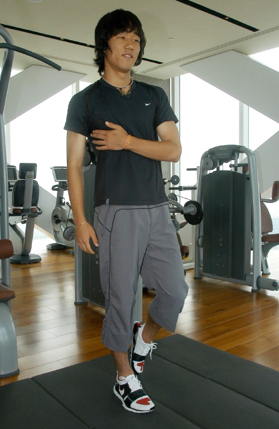 박주영이 20일 서울 삼성동 파크하얏트호텔에서 열린 나이키의 ‘나이키 프리’ 제품 설명회에 참석, 신발을 착용하고 가벼운 걷기로 기능을 시험해보고 있다.‘나이키 프리’는 신발을 신고도 맨발 훈련의 효과를 낼 수 있다는 나이키의 새로운 트레이닝화 모델이다./사진=나이키 제공 [Copyright ⓒ OSEN(www.osen.co.kr) 무단전재 및 재배포 금지]