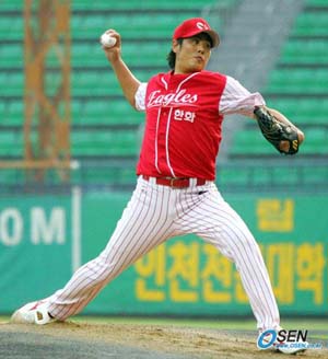 한화 선발 정민철(33)의 직구 최고 구속은 139km로 두산 선발 박명환(28)의 슬라이더(최고 142km)보다도 느렸다. 그런데도 이날 마운드를 더 오래 지키고 승리까지 차지한 건 정민철이었다. 정민철은 21일 잠실구장에서 열린 두산전에 선발로 나서 6⅓이닝을 6피안타 3실점 무사사구로 막아내고 시즌 8승(2패)째를 따냈다. 직구 구속은 130km대 중반을 오갔지만 타자들의 타이밍을 뺏는 완급 조절 능력과 수싸움에서 한 수 위였다. 삼진도 5개나 잡아냈다. 7회 임재철과 승부하면서 최저 스피드인 102km짜리 슬로커브를 던진 걸 비롯 110~120km 사이에서 움직인 체인지업, 슬라이더를 적절히 배합했다. 단 1승도 거두지 못한 작년과는 다른 원숙한 투구 패턴이었다. 이에 비해 두산 박명환은 1990년대 중반 무렵의 정민철을 연상시켰다. 140km대 후반을 찍는 직구와 140km 안팎이 나오는 슬라이더가 있으니 그럴 만도 했다. 그러나 제구력이 흔들리자 그 위압적 구질도 제대로 빛을 발하지 못했다. 2회 브리또에게 맞은 선제 홈런은 전광판에 146km가 찍혔지만 바깥쪽 높게 형성됐고, 5회 2사 만루 상황에서도 폭투와 밀어내기로 패배의 빌미를 제공했다. 이날 경기마저 패하면 한화에 2게임차로 쫓기게 되는 두산은 2-4로 뒤지던 7회말 1사 1,2루 상황에서 부상중인 김동주를 대타로 내세우는 등 총력전을 폈지만 1점을 따라가는 데 그쳤다. 김동주는 한화 윤규진에게 헛스윙 삼진으로 물러났고 이어 등장한 1번 전상렬이 적시 1타점 2루타를 쳐 2,3루 역전 찬스를 만들었으나 후속 황윤성의 내야 플라이를 한화 2루수 백재호가 다이빙 캐치해내 동점을 이루지 못했다. 김인식 한화 감독은 8회 원아웃 이후부터 마무리 지연규를 투입해 1점차 승리를 지키는 데 성공했다. 지연규는 18세이브째를 따냈다. 6이닝 4실점한 박명환은 시즌 2패(10승)째를 기록하면서 한화전 4연승 행진에도 종지부를 찍었다. 잠실=김영준 기자 sgoi@osen.co.kr [Copyright ⓒ OSEN(www.osen.co.kr) 무단전재 및 재배포 금지]