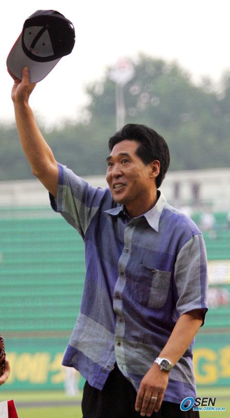 22일 LG 트윈스와 두산 베어스의 잠실 경기에 앞서 신선우 창원 LG 세이커스 농구단 감독이 시구를 하기 위해 마운드로 나와 관중들을 향해 손을 흔들고 있다./잠실=주지영 기자 jj0jj0@osen.co.kr [Copyright ⓒ OSEN(www.osen.co.kr) 무단전재 및 재배포 금지]