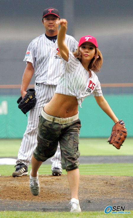 23일 LG 트윈스와 두산 베어스의 잠실경기에 앞서 시구를 맡은 가수 길건이 마운드에서 공을 뿌리고 있다. 정통 오버핸드에 가까운 폼이다./잠실=주지영 기자 jj0jj0@osen.co.kr [Copyright ⓒ OSEN(www.osen.co.kr) 무단전재 및 재배포 금지]