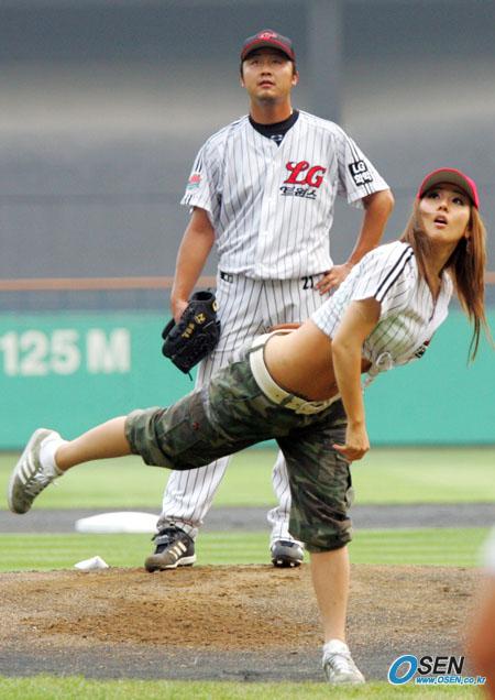 23일 LG 트윈스와 두산 베어스의 잠실경기에 앞서 시구를 맡은 가수 길건이 팔을 앞으로 내는 동작까지는 좋았으나 릴리스포인트를 잡지 못해 엉뚱하게 높이 날아간 볼을 쳐다보고 있다./잠실=주지영 기자 jj0jj0@osen.co.kr [Copyright ⓒ OSEN(www.osen.co.kr) 무단전재 및 재배포 금지]