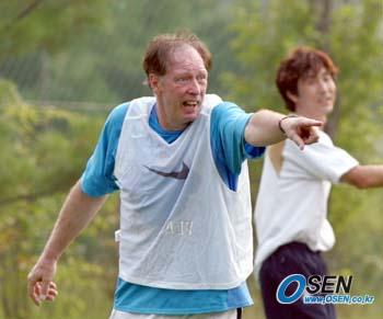 오는 31일 개막되는 동아시아선수권대회에 참가하는 '본프레레호'가 소집 첫 날부터 강도높은 훈련을 펼쳐 눈길을 끌었다. 파주트레이닝센터(NFC)에서 24일 오후 4시 30분부터 2시간동안 진행된 첫 훈련에서 김진규를 제외한 24명의 대표 선수들은 달리기 훈련부터 시작해 패스, 슈팅 및 청백전까지 강도높은 훈련을 실시했다. 처음 달리기와 스트레칭을 할 때는 선수들 사이에서 폭소와 농담이 오고가는 등 화기애애한 분위기가 흘렀으나 패스와 슈팅 등 본격적인 훈련이 시작하자마자 이내 긴장한 모습이 역력했다. 특히 대회가 1주일 앞으로 다가온 것을 의식한 듯 요하네스 본프레레 감독은 선수들의 몸놀림이 느려질 때마다 영어로 "더 빠르게"를 외치는가 하면 유창한 한국어 발음으로 "빨리 빨리"라고 말하며 선수들을 종용했다. 또한 본프레레 감독은 패스 및 슈팅 훈련을 할 때 자신의 의도에 맞게 이행한 선수에게는 칭찬을 연발하는가 하면 실수를 한 선수에게는 가차없이 불호령을 내리기도 했다. 하지만 이런 본프레레 감독의 종용과 불호령에도 불구하고 대표팀 선수들은 섭씨 30도를 넘는 무더위에도 아랑곳하지 않고 구슬땀을 흘리며 동아시아선수권을 앞둔 각오를 다지는 모습을 보였다. 한편 본프레레호는 28일까지 파주 NFC에서 훈련을 가진 다음 중국과의 첫 경기가 열리는 대전으로 29일 이동한다. 파주=박상현 기자 tankpark@osen.co.kr [Copyright ⓒ OSEN(www.osen.co.kr) 무단전재 및 재배포 금지]