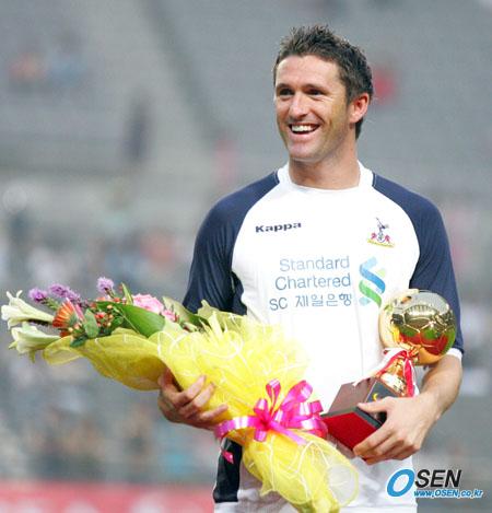 24일 서울 상암 월드컵경기장서 벌어진 올림피크 리옹과 토튼햄 핫스퍼의 피스컵 2005 코리아 대회 결승전서 3-1로 이긴 토튼햄의 로비 킨이 팀 우승의 일등공신으로 뽑혀 최우수선수에게 주어지는 골든볼을 들고 시상대에 서 있다./상암=주지영 기자 jj0jj0@osen.co.kr [Copyright ⓒ OSEN(www.osen.co.kr) 무단전재 및 재배포 금지]