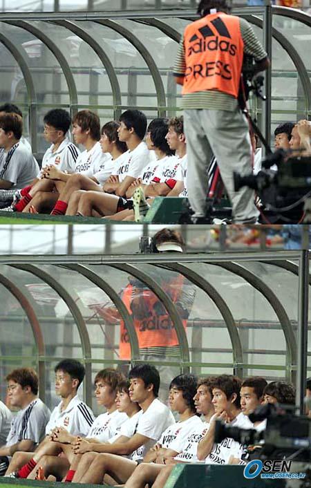 26일 서울 상암 월드컵경기장에서 벌어진 FC 서울과 보카 주니어스의 친선 경기 출장 선수 명단에서 제외된 박주영이 TV 카메라에 찍히기 싫어 얼굴을 가려 카메라맨이 옆으로 가서 찍자 다른쪽으로 얼굴을 돌리고(위 사진) 뒤로 가서 촬영하자 다시 앞을 쳐다보고 있다(아래 사진)./상암=손용호 기자 spjj@osen.kr [Copyright ⓒ OSEN(www.osen.co.kr) 무단전재 및 재배포 금지]