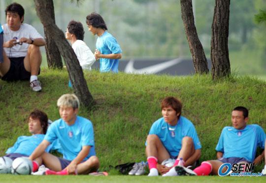 27일 오후 파주 국가대표 트레이닝 센터에서 열린 대표팀과 건국대의 연습경기 도중 그라운드 밖에서 대기하고 있는 선수들 뒤로 발바닥 부상으로 인해 출장이 불가능한 박주영이 최주영 의무팀장과 함께 가볍게 러닝하고 있다./파주=주지영 기자 jj0jj0@osen.co.kr [Copyright ⓒ OSEN(www.osen.co.kr) 무단전재 및 재배포 금지]