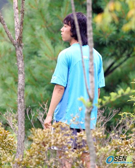 27일 오후 파주 국가대표 트레이닝 센터에서 열린 대표팀과 건국대의 연습경기에 발바닥 부상으로 결장한 박주영이 취재진의 카메라가 집중되자 그라운드 너머 나무 사이로 들어가며 피하고 있다./파주=주지영 기자 jj0jj0@osen.co.kr [Copyright ⓒ OSEN(www.osen.co.kr) 무단전재 및 재배포 금지]