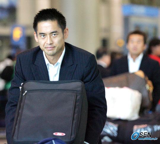 입국장을 빠져 나오는 일본 주전 골키퍼 가와구치