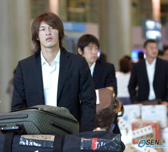 오는 31일 대전에서 개막되는 제2회 동아시아축구선수권대회에 참가할 일본 국가대표팀이 29일 낮 인천공항을 통해 내한했다. 부상으로 제외된 스트라이커 구보 아쓰히코 대신 선발된 마키 세이치로가 입국장을 빠져 나오고 있다./인천공항=주지영 기자 jj0jj0@osen.co.kr [Copyright ⓒ OSEN(www.osen.co.kr) 무단전재 및 재배포 금지]