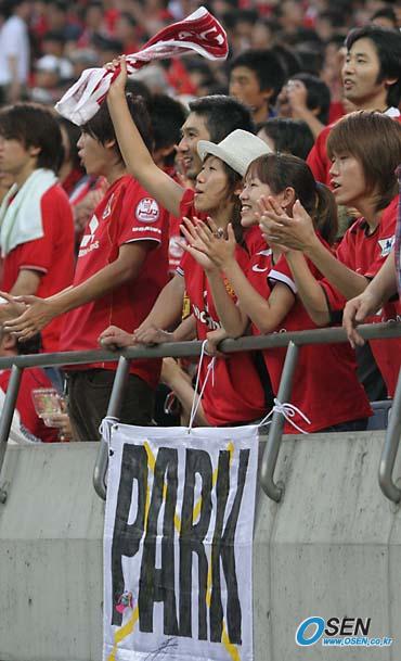30일 일본 사이타마 경기장에서 벌어진 잉글랜드 맨체스터 유나이티드와 일본 우라와 레즈의 친선경기에 박지성이 눈 주위 부상으로 결장했음에도 일본 팬들이 스탠드에 박지성의 성(PARK)을 적은 플래카드를 걸고 응원하고 있다./우라와=손용호 기자 spjj@osen.co.kr [Copyright ⓒ OSEN(www.osen.co.kr) 무단전재 및 재배포 금지]