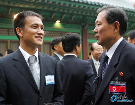 김주성 대한축구협회 이사와 이경일 북한 단장