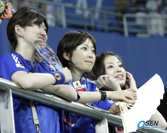 31일 북한과 일본의 제2회 동아시아선수권대회 첫날 경기가 열린 대전 월드컵경기장을 찾은 일본 여성팬들이 관중석에서 응원에 한창이다./대전=주지영 기자 jj0jj0@osen.co.kr [Copyright ⓒ OSEN(www.osen.co.kr) 무단전재 및 재배포 금지]