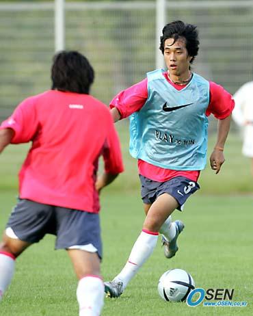 북한과의 제2회 동아시아선수권대회 2차전을 하루 앞둔 한국대표팀이 3일 오후 대전 월드컵경기장 보조구장에서 마무리 훈련을 했다. 박주영은 미니게임에 비주전팀으로 뛰었으나 본프레레 감독은 훈련 후 북한전에 기용하지 않겠다고 밝혔다./대전=손용호 기자 spjj@osen.co.kr [Copyright ⓒ OSEN(www.osen.co.kr) 무단전재 및 재배포 금지]
