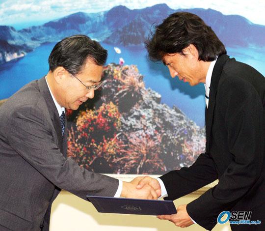 '한일 축구 친선대사' 임명장을 받는 홍명보