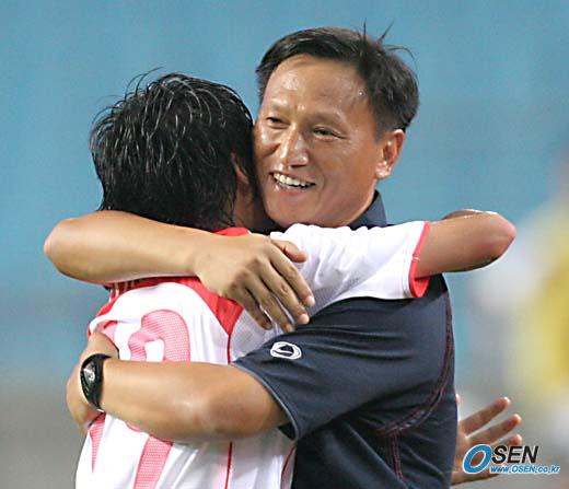 6일 대구 월드컵구장에서 벌어진 동아시아여자축구대회에서 한국은 일본과 0-0으로 승부를 가리지 못했지만 승점 7점을 기록, 우승을 차지했다. 경기종료 휘슬이 울리자 차연희가 안종관 감독과 감격의 포옹을 나누며 우승의 기쁨을 함께하고 있다. /대구=손용호 기자 spjj@osen.co.kr [Copyright ⓒ OSEN(www.osen.co.kr) 무단전재 및 재배포 금지]