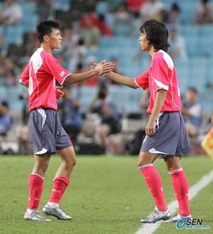 드디어 박주영이 국내 A매치 데뷔전을 가졌다. 박주영은 7일 대구 월드컵 경기장에서 열린 일본과의 동아시아 축구선수권 마지막 경기에서 후반 28분 정경호와 교체되어 그라운드를 밟았다. 이날 정경호는 공격형 미드필더로 활약하고 이동국과 이천수가 투톱으로 나왔으나 박주영이 나오자 이천수가 정경호의 자리로 내려갔고 박주영이 이동국과 투톱을 나섰다. 박주영은 지난 우즈베키스탄과 쿠웨이트와의 2006 독일 월드컵 아시아지역 최종예선전에 출전하며 A매치 2경기에 나섰지만 국내에서 열린 A매치는 이번이 처음이다. 특히 청구고 출신의 박주영은 고향인 대구에서 국내 A매치 데뷔전을 가져 의미가 더했다. 요하네스 본프레레 감독은 일본의 골문을 계속 두드리고도 지난 2경기와 마찬가지로 득점포가 터지지 않자 박주영에게 몸을 풀 것을 지시했고 박주영이 후반 12분부터 몸을 풀자 붉은 악마 등 관중들이 일제히 환호를 지르며 반갑게 맞이했다. 한편 김두현은 전후반 날카로운 중거리 슈팅과 함께 후반 16분에는 일본 진영 왼쪽에서 얻은 프리킥을 날리는 등 뛰어난 활약을 펼쳤지만 갑자기 부상을 당해 후반 24분 김정우와 교체됐다. 대구=박상현 기자 tankparK@osen.co.kr [Copyright ⓒ OSEN(www.osen.co.kr) 무단전재 및 재배포 금지]