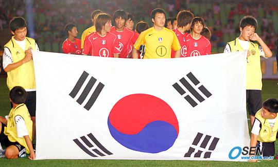 7일 대구 월드컵경기장에서 벌어진 제2회 동아시아축구선수권대회 최종일 일본전에서 0-1로 패해 이번 대회 출전 4개국 중 최하위가 된 한국 선수들이 굳은 표정으로 시상식을 기다리고 있다./대구=주지영 기자 jj0jj0@osen.co.kr [Copyright ⓒ OSEN(www.osen.co.kr) 무단전재 및 재배포 금지]