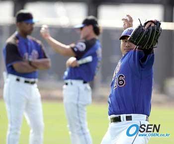 '너무 잘 던져도 골치네'. 뉴욕 메츠 수뇌부가 고민에 빠졌다. 7일(한국시간) 셰이스타디움에서 열린 시카고 컵스 전에서 '나이스가이' 서재응(28)이 8회 1사까지 4피안타 무실점으로 쾌투하며 2-0으로 승리를 거두자 '왜 이렇게 잘 던지는 투수를 마이너에서 오랫동안 썩혔느냐?'라는 기자들의 질문 세례가 쏟아졌기 때문이다. '제구력 부족으로 늘 불안한 피칭을 했던 이시이 가즈히사 대신 서재응을 쓰지 않았는가'라는 질책성 질문이 꼬리에 꼬리를 물자 윌리 랜돌프 감독과 릭 피터슨 코치는 서로 책임을 전가하기에 급급했다. 랜돌프 감독은 "나는 '만약 전에 이랬으면 어땠을까?'라고 생각하지 않는 스타일이다. 한 달 전만 해도 서재응이 이처럼 잘 던질 줄 누가 알았느냐?"며 반문한 뒤 " 한 경기를 잘 던졌다고 해서 반드시 다음 경기도 호투한다는 보장이 없다고 생각한다"라고 궤변을 늘어놓으며 질문의 핵심에서 요리조리 비껴 가기에 급급했다. 지난해까지 서재응과 불편한 관계를 유지했던 피터슨 코치도 "정말 서재응이 빅리그 투수다운 피칭을 했다"며 칭찬하면서도 "왜 나에게 서재응을 뒤늦게 승격시켰냐는 질문을 하는가? 마이너리그 강등이나 빅리그 승격은 프런트에서 하는 것이니 그런 질문은 미나야 단장에게 직접 물어보라"고 화살을 돌렸다. 오마르 미나야 단장은 "이시이가 골탕을 먹인 탓이다. 이시이는 호투와 실망스런 투구를 끊임없이 반복해왔다. 이시이가 늘 호투하기를 인내심을 갖고 기다렸을 뿐이다. 전반기를 마치고 로테이션 교체를 고려한 게 사실이지만 공교롭게도 이시이는 두 번 연속 호투를 한 반면 서재응은 마이너에서 두 번 연속 부진을 보였기 때문에 변화를 주지 않았던 것"이라며 궁색한 변명을 늘어 놓았다. 또 미나야 단장은 "오늘처럼만 늘 던져준다면 서재응은 계속 메이저리그에 잔류할 것"이라고 덧붙여 기자들의 예공을 피해갔다. 결국 미나야 단장의 말대로라면 마이너리그에서 13실점을 했던 7월17일 경기 때문에 서재응의 빅리그 승격이 지연됐다는 것. 한편 서재응이 메이저리그 통산 313승을 따낸 그렉 매덕스를 상대로 승리를 따내며 14⅓이닝 연속 무실점 행진을 이어가자 트랙슬이 복귀할 경우 선발 로테이션을 어떻게 구성할 지가 메츠 구단이 해결해야 할 새로운 과제로 떠올랐다. 트랙슬은 같은날 더블 A 등판에서 7이닝 동안 4피안타 1실점으로 호투, 빅리그 복귀가 임박했음을 알렸다. 시즌 초반 부상자명단에서 돌아온 크리스 벤슨때문에 필라델피아 필리스전에서 7이닝 1피안타 무실점의 눈부신 투구를 펼친 서재응을 마이너리그로 강등시키는 결정을 내렸던 전례가 있어 메츠 구단은 이번에 트랙슬이 복귀할 경우 어떻게 선발 로테이션을 정리해야 할 지 고심하고 있는 것. 만약 서재응이 그저그런 투구를 펼쳤다면 당연히 선발 로테이션에서 밀려난 0순위 후보였지만 이제는 상황이 바뀐 것이다. 랜돌프 감독은 "트랙슬이 빅리그에 돌아온다는 것이 당장 선발 로테이션에 투입된다는 의미는 아니다. 지금은 매경기 최선을 다해 이기는 것이 중요하다. 일단 서재응에게 한 번 더 등판 기회를 줄 것이다. 그 다음 문제는 그 때 생각하겠다"라고 밝혔다. 서재응이 오는 13일 LA 다저스전에서도 호투할 경우 계속 선발진에 잔류할 수 있음을 시사한 대목이다. 서재응과 관련해 입이 열개라도 할 말이 없는 메츠 코칭스태프와 미나야 단장이 이번에는 과연 어떤 결정을 내릴지 지켜보자. 뉴욕=대니얼 최 통신원 daniel@osen.co.kr 올 스프링캠프서 서재응의 뒤에서 대화하는 랜돌프 감독(왼쪽)과 피터슨 코치. [Copyright ⓒ OSEN(www.osen.co.kr) 무단전재 및 재배포 금지]