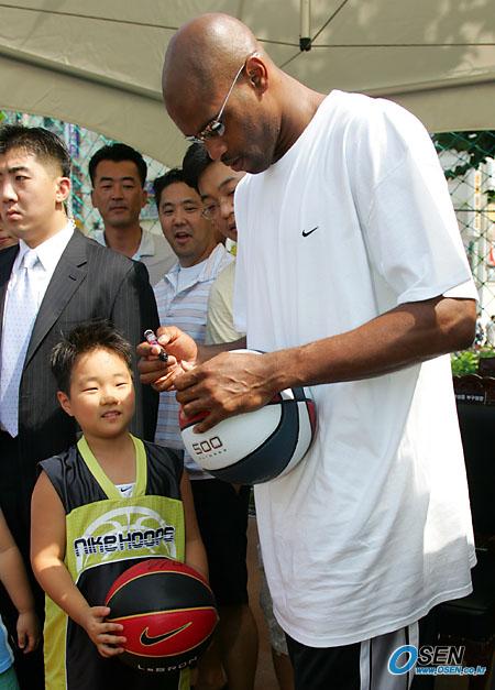 나이키 초청으로 내한한 미국프로농구 NBA 스타 빈스 카터가 9일 오전 서울 잠원동체육공원 농구코트 개장식에 참석, 어린이에게 사인해 주고 있다./주지영 기자 jj0jj0@osen.co.kr [Copyright ⓒ OSEN(www.osen.co.kr) 무단전재 및 재배포 금지]