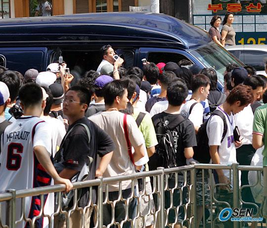 빈스 카터의 차 주위로 몰려든 농구팬들