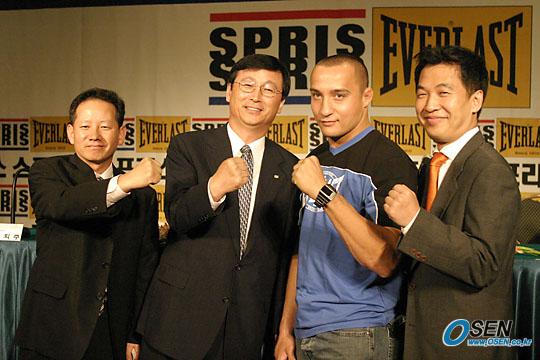 10일 서울 홍은동 그랜드 힐튼 호텔에서 스포츠용품업체 스프리스와 데니스 강의 공식 후원 계약 조인식이 열렸다. 데니스 강이 조인식을 마친 뒤 김세제 스프리스 대표이사(왼쪽에서 두 번째) 등과 함께 기념 촬영하고 있다./주지영 기자 jj0jj0@0sen.co.kr [Copyright ⓒ OSEN(www.osen.co.kr) 무단전재 및 재배포 금지]