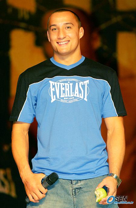 10일 서울 홍은동 그랜드 힐튼 호텔에서 스포츠용품업체 스프리스와 데니스 강의 공식 후원 계약 조인식이 끝난 뒤 팬들과의 만남 행사가 열렸다. 데니스 강이 무대에 올라 한 손에는 마이크를 들고 한 손에는 먹던 사과를 들고 환하게 웃고 있다./주지영 기자 jj0jj0@0sen.co.kr [Copyright ⓒ OSEN(www.osen.co.kr) 무단전재 및 재배포 금지]