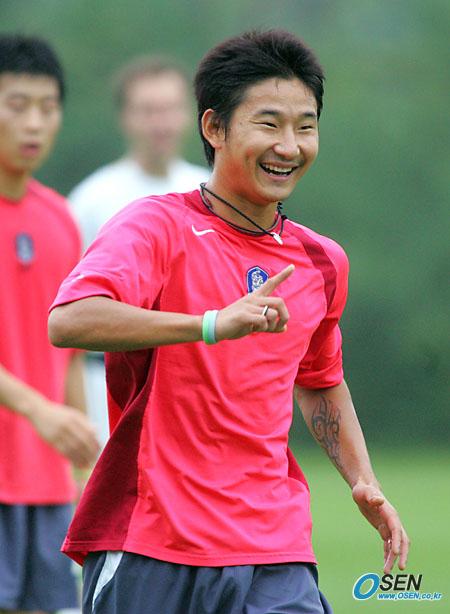 12일 남북 통일축구를 이틀 앞둔 대표팀이 파주 트레이닝 센터에서 2시간에 걸쳐 강도 높은 훈련을 가졌다. 이천수가 환한 표정으로 훈련을 하고 있다./파주=주지영기자jj0jj0@osen.co.kr [Copyright ⓒ OSEN(www.osen.co.kr) 무단전재 및 재배포 금지]