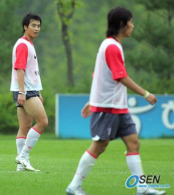 대표팀의 새로운 3-5-2 포메이션에서 과연 누가 '투톱'을 맡을까. 일단 '투톱' 중의 하나는 이미 이동국을 위한 자리다. 그렇다면 나머지 한 곳은 누가 될까. 경기도 파주 대표팀 트레이닝 센터(NFC)에서 12일 가진 대표팀 훈련에서 이동국과 박주영이 짝을 이뤄 미니 게임을 가졌다. 결국 이동국인 미니 게임에서 2골을 넣으며 골이 터지지 않는 최근의 슬럼프에서 벗어나려는 노력을 엿보이게 했다. 현재 북한과의 남북통일축구에서 공격수로 쓸 수 있는 선수는 이동국, 김진용, 박주영으로 한정되어 있다. 정경호도 그동안 공격수로 활약하긴 했지만 지난 7일 일본과의 동아시아축구 선수권에 이어 이날 훈련에서도 공격형 미드필더로 뛰어 결국 포지션이 변경된 것으로 관측된다. 일단 김진용과 박주영의 '네임 밸류'로 봤을 때는 박주영이 이동국과 투톱을 이룰 가능성이 크다. 또한 김진용이 바로 전날까지 부상 회복훈련을 가졌다는 점과 박주영이 다친 오른발로 슈팅을 하기 시작했다는 점도 이를 뒷받침한다. 골이 터지지 않는 슬럼프에서 벗어나려는 이동국과 발바닥 부상에서 벗어난 박주영. 그들이 북한전에서 대표팀의 '골가뭄'을 해결해 줄 단비가 될 득점포를 쏘아올릴지 관심이 모아진다. 파주=박상현 기자 tankpark@osen.co.kr [Copyright ⓒ OSEN(www.osen.co.kr) 무단전재 및 재배포 금지]
