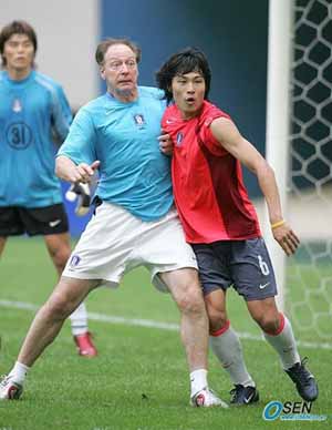 서울 상암 월드컵경기장에서 14일 열리는 남북통일축구에 출전할 한국대표팀이 마지막 담금질을 했다. 요하네스 본프레레 감독이 이끄는 대표팀은 13일 상암 월드컵경기장에서 팀 전술훈련과 미니게임, 코너킥 훈련 등으로 마무리 훈련을 가졌다. 이날 훈련에서 해외파 5명이 빠진 대표팀 20명 선수들은 비록 남북통일축구가 친선경기이긴 하지만 최근 부진에 따른 곱지 않은 시선을 불식시키기 위해 반드시 이긴다는 결의에 찬 모습으로 운동장에 나섰다. 특히 미니게임에서는 전날 연습경기에 나섰던 이동국-박주영 '투톱' 대신 이동국-이천수 '투톱'이 떠 눈길을 끌었다. 하지만 대표팀 관계자는 "선수가 모자라서 섞어놨기 때문에 큰 의미가 없다"고 밝혔다. 실제로 선수가 모자라 골키퍼 이운재가 필드 플레이어로 활약하고도 11명이 아닌 10대 10 연습경기를 펼쳤다. 코너킥은 김두현 김동진 이천수 오범석 등이 번갈아 찼다. 특히 코너킥 훈련에서는 본프레레 감독이 직접 위치를 지정해주는가 하면 직접 골 지역 내에서 선수들과 몸싸움까지 펼치는 등 적극적인 모습으로 눈길을 끌었다. 훈련이 끝난 뒤 이천수는 기자들과의 인터뷰를 통해 "대표팀이 전체적으로 침체됐고 몸도 무겁지만 준비를 많이 했다. 친선경기지만 꼭 이겨 사우디아라비아와의 2006 독일 월드컵 아시아지역 최종예선 마지막 경기에서 승리할 수 있도록 하겠다"며 "이미 월드컵행은 결정됐지만 1위냐, 2위냐에 따라 본선 조추첨에서 시드가 달라질 수 있는 만큼 1위를 차지하겠다"는 각오를 밝혔다. 또 이천수는 "지난 2002년 한일 월드컵 때는 선수들 눈만 봐도 알 수 있을 정도였으나 지금은 선수들이 많이 바뀌다보니 약속된 플레이가 나오지 않고 있다"며 "연습을 통해 보완하는 중이고 개인적으로도 골을 넣은 지 오래됐기 때문에 한이 쌓여 있다. 꼭 골을 넣도록 하겠다"고 말했다. 14일 경기에 주전 골키퍼로 나설 것으로 보이는 김영광도 "쉽지 않은 경기이지만 어렵게 기회를 잡았기 때문에 최선을 다할 것"이라고 말한 뒤 "경기 중에는 선후배가 따로 없다. 수비에 구멍이 보일 때는 욕을 하며 호통이라도 쳐서 수비의 집중력을 가질 수 있도록 하겠다"고 밝혔다. 한편 오는 17일 서울 상암 월드컵경기장에서 한국과 맞붙을 사우디 아라비아도 이날 입국, 메이필드 호텔에 여장을 푼 뒤 경기도 파주 대표팀 트레이닝센터(NFC)에서 몸을 풀었다. 1.5진으로 구성된 사우디 아라비아는 "지난번에는 2-0으로 이겼으니 이번엔 3-0으로 꺾겠다"며 호기를 부렸다. 상암=박상현 기자 tankpark@osen.co.kr [Copyright ⓒ OSEN(www.osen.co.kr) 무단전재 및 재배포 금지]