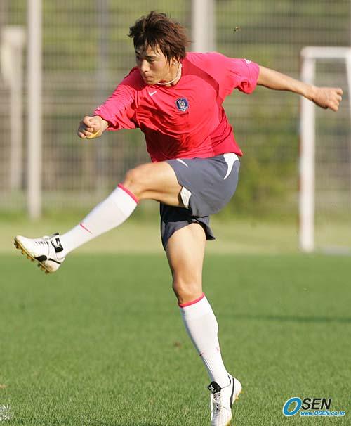 17일 서울 상암 월드컵경기장에서 벌어질 사우디아라비아와의 2006 독일월드컵 아시아 최종예선 마지막 경기를 하루 앞둔 16일 오후 태극전사들이 상암 보조구장에서 마무리 훈련을 가졌다. 사우디전에 선발로 나설 것으로 보이는 백지훈이 슈팅 연습을 하고 있다. /상암=손용호 기자 spjj@osen.co.kr [Copyright ⓒ OSEN(www.osen.co.kr) 무단전재 및 재배포 금지]