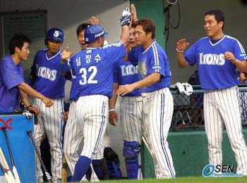0대8. 선두 삼성의 8월 '홈런 성적표'다. 8월 들어 치른 9경기에서 삼성 투수들이 상대 팀에 8개의 홈런을 내준 반면 라이온즈 타자들은 9경기에서 한 번도 담장을 넘기지 못하고 있다. '9경기 무홈런'이 별로 심각하게 느껴지지 않는다면 이건 어떨지. 삼성 타자가 마지막으로 홈런 세리머니를 펼친 건 지난달 29일 두산전 3회 심정수가 마지막이었다. 당시 1-0으로 앞선 3회 리오스를 상대로 좌월 스리런홈런을 날린 뒤 의기양양하게 다이아몬드를 돌던 심정수는 닥칠 미래를 짐작이나 했을까. 그 뒤로 지난 16일 두산전까지 삼성 타자들은 정확히 11경기에서 464타석째 홈런을 날리지 못하고 있다. 한국판 '투수들의 무덤' 대구구장을 홈으로 쓰는 삼성으로선 이례적인 홈런 침묵이다. 삼성이 8월 무홈런에 그치는 동안 SK는 무려 18번이나 담장을 넘겼고 한화는 15번 대포를 쏘아올렸다. 잠실구장을 홈으로 쓰는 두산조차 김동주가 빠진 상황에서도 4번은 하이파이브를 했다. 16일 대구구장에서 열린 두산전에서도 연장 12회까지 가도록 홈런 한 방이 터지지 않았다. 2-0으로 앞서던 두산이 김동주를 대타로 썼다 교체 수비수의 실책이 나와 승리를 날린 경기였지만 삼성도 한 방이면 꿀맛같은 승리를 맛볼 수 있었다. 삼성이 8월 들어 4승 1무 4패로 반타작에 급급한 건 투수들의 난조 탓도 있지만 홈런 실종, 장타 침묵의 영향이 크다. 대포 실종은 당연히 쳐줘야 할 타자들이 치지 못한 결과다. 그 중에서도 심정수의 부진이 두드러진다. 심정수는 개막 첫 달인 4월 6홈런을 시작으로 5월 5개, 6월 5개, 7월 4개로 꾸준히 담장을 넘겼지만 8월은 보름이 넘어가도록 개점 휴업이다. 8월 타격 성적이 29타수 6안타, 2할7리로 극도로 부진한 가운데 홈런은 물론 2루타나 3루타 등 장타가 한 방도 없다. 심정수(19개)에 이어 팀 내 홈런 2,3위인 양준혁(11개)과 조동찬(10개)도 8월 월간 타율이 고작 2할1푼9리와 1할7푼2리로 타율이 급락하면서 홈런 실종을 부채질하고 있다. 특히 양준혁은 7월 14일 제주 오라구장에서 벌어진 현대전 이후 20경기째 홈런을 못 날리고 있어 개인 통산 타점과 득점 등 장종훈의 기록 돌파를 코 앞에 두고 '아홉수' 기미마저 보이고 있다. 홈런 침묵을 삼성이 화력을 앞세운 팀에서 투수력의 팀으로 탈바꿈하는 과정이라고 이해하기엔 걸리는 대목이 있다. 장타 뿐 아니라 안타 자체가 터지지 않고있다는 사실이다. 8월 들어 팀당 9~12경기를 치른 가운데 삼성의 팀 안타수는 72개로 8개 팀중 가장 적다. 23점에 그친 팀 득점 역시 최하위로 11경기에서 56점을 뽑은 SK의 절반에도 못미치고 있다. 16일 현재 삼성은 101경기에서 홈런 77개를 날려 8개팀 중 6위에 그치고 있어 올 시즌을 두자릿수 팀 홈런으로 마감할 수도 있다. 한국 프로야구 출범 후 누적 팀 홈런 1위이자 2003년 한 시즌 최다 팀홈런 기록(213개)을 갈아치운 삼성이기엔 몸에 맞지 않는 옷처럼 홈런 침묵이 어색하기만 하다. 이종민 기자 mini@osen.co.kr 지난 7월 29일 두산전에서 심정수가 현재까지 팀의 마지막인 홈런을 날리고 들어오는 모습. [Copyright ⓒ OSEN(www.osen.co.kr) 무단전재 및 재배포 금지]