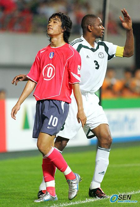 17일 서울 상암 월드컵경기장에서 벌어진 2006 독일월드컵 아시아 최종예선 마지막 경기 사우디아라비아전에서 한국이 0-1로 패했다. 슈팅이 빗나가자 박주영이 아쉬운 표정을 짓고 있다./상암=주지영 기자 jj0jj0@osen.co.kr [Copyright ⓒ OSEN(www.osen.co.kr) 무단전재 및 재배포 금지]