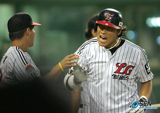 18일 프로야구는 대구,대전,인천에서 벌어질 경기가 우천으로 취소 LG-현대의 잠실경기만 벌어졌다. LG 2회말 2사 3루 이병규가 2점 홈런을 쳐 5대 4로 역전을 시키고 이건열 코치의 환영을 받으며 홈을 밟고 있다./잠실= 주지영 기자 jj0jj0@osen.co.kr [Copyright ⓒ OSEN(www.osen.co.kr) 무단전재 및 재배포 금지]