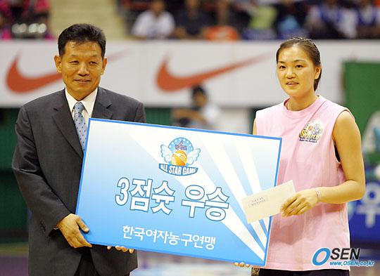 19일 장충체육관에서 여자 프로농구 올스타전에서 3점슛 콘테스트 우승자인 한채진이 포즈를 취하고 있다. /장충체=주지영 기자 jj0jj0@osen.co.kr [Copyright ⓒ OSEN(www.osen.co.kr) 무단전재 및 재배포 금지]