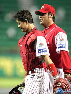 한화 조성민(32)이 8회말 등판, 1이닝을 1피안타 무실점으로 막고 시즌 두 번째 등판에서도 무실점 투구를 해냈다. 아울러 한화는 올시즌 단일 구단 한 경기 최다안타 기록인 21안타를 몰아치면서 LG를 13-4로 대파했다. 종전 기록은 8월 9일 삼성이 대전 한화전에서 기록한 20안타였다. 이로써 한화는 시즌 5연승을 이어가면서 LG전 잠실구장 3연패도 끊었다. 한화는 LG 좌완 선발 이승호를 상대로 13안타로 두들기며 5회까지 8득점, 일찌감치 대세를 갈랐다. 13안타 가운데 2루타 이상의 장타가 6개나 됐다. LG는 이후 4명의 불펜투수를 더 투입했으나 안타 8개를 더 맞고 1경기 최다안타 신기록의 제물이 됐다. 활발한 타선지원 덕에 한화 좌완 송진우(39)는 6이닝 3실점하고 손쉽게 시즌 7승(6패)째를 따냈다. 김인식 한화 감독은 11-3으로 리드하고 있던 8회말 조성민을 등판시켰다. 지난 8월 15일 데뷔전에서 첫 승을 따낸 이래 두 번째 등판이었다. 점수 차가 크게 벌어진 상황인데다 "2경기에 한 번 꼴로 등판시키겠다"고 김 감독이 경기 전 밝힌 바 있기에 7회말 몸을 풀 때부터 등판은 어느 정도 예견된 상황이었다. 마운드에 오른 조성민은 첫 타자 권용관을 풀 카운트 승부 끝에 유격수 땅볼 처리했다. 그러자 3루측 한화 응원석에서는 "조성민"을 연호하면서 응원을 아끼지 않았다. 특히 권용관을 상대로 던진 5구째 직구는 잠실구장 전광판에 139km를 찍었다. 지난 15일 최고 137km를 던진 바 있었는데 복귀 후 자신의 최고 구속이었다. 이어 조성민은 다음 타자 정의윤에게 우전안타를 맞았다. 우익수 고동진의 어설픈 타구 처리 탓에 2루타가 되고 말았다. 다음타자는 LG의 4번타자 박용택. 조성민은 7구까지 가는 풀 카운트 승부를 벌여 129km짜리 바깥쪽 높은 유인하는 변화구로 헛스윙 삼진 처리하는 관록을 발휘했다. 그리고 5번 최동수마저 볼 카운트 2-1에서 3루수 땅볼로 아웃시키고 마운드에서 내려왔다. 한화는 9회초 공격에서 2점을 더 보탰고, 9회말을 좌완 윤근영이 1실점으로 마무리, 경기를 끝냈다. 잠실=김영준 기자 sgoi@osen.co.kr [Copyright ⓒ OSEN(www.osen.co.kr) 무단전재 및 재배포 금지]