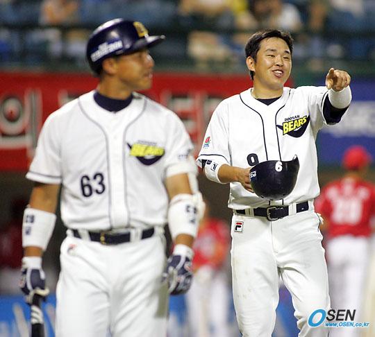 23일 두산베어스와 기아 타이거즈의 잠실 경기 두산의 8회말 1사 1,3루서 손시헌의 우익수 플라이 때 태그업한 3루 주자 나주환이 홈에서 아웃된 뒤 덕아웃으로 돌아오며 세이프가 아니냐며 아쉬워하고 있다. /잠실=주지영 기자 jj0jj0@osen.co.kr [Copyright ⓒ OSEN(www.osen.co.kr) 무단전재 및 재배포 금지]