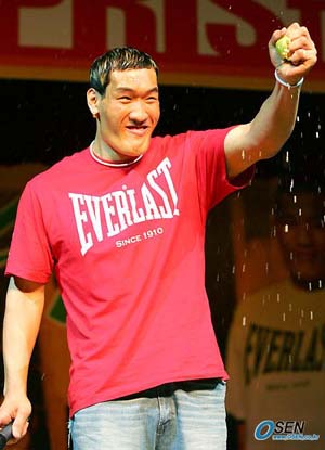 “밥 샙은 밥 샙, 나는 나다. 누구와 비교하는 것 자체가 싫다”. 운명의 시간이 다가오고 있다. 앞으로 한 달도 채 남지 않았다. 격투기 선수로 입신한 지 불과 반년 만에 정상급 투사로 입지를 굳힌 최홍만(25. 218㎝, 158㎏)이 ‘야수’밥 샙(31. 200㎝, 150㎏)과의 결전을 앞두고 결연한 의지를 피력했다. 오는 9월23일 일본 오사카에서 벌어지는 격투기 K-1 월드그랑프리 개막전에서 밥 샙과 맞대결하게 될 최홍만은 25일 K-1 공식홈페이지를 통해 “오로지 이기는 것이 중요하다. 이긴다는 것 외에 아무것도 생각하고 싶지 않다”고 자신의 심정을 털어놓았다. 최홍만은 “솔직히 밥 샙과의 대전은 내년에나 성사될 것으로 생각했다”면서도 “하지만 언젠가는 부딪치지 않으면 안될 상대로 여겨왔다”고 털어놓았다. 최홍만은 격투기 무대 데뷔 무렵 밥 샙을 자신이 본받아야할 이상적인 파이터로 여긴 듯하다. 인기나 실력을 갖춘데다 자신과 엇비슷한 체격조건을 지녔기 때문이었다. 그러나 최홍만은 밥 샙과의 비교를 사양했다. 그의 자존심이 허락하지 않는 것이다. K-1 홈페이지는 ‘장르를 파괴하는 남자, 최홍만이 밥 샙을 깬다’는 제하에 최홍만과의 인터뷰를 4페이지에 걸쳐 실었다. 이 홈페이지는 ‘격투기 전향 반 년만에 정상급 파이터 대열에 든’ 최홍만의 강함의 비밀은 ‘집중력’이라고 분석했다. 이는 최홍만이 설익은 발차기 등을 구사하기 보다는 ‘펀치머신과 같고, 바주카포 같은’ 위력을 지닌 주먹을 유효 적절하게 사용하는 데 따른 것이라는 설명이다. 최홍만은 지난 3월 격투기 데뷔 무대인 K-1 서울대회에서 우승한 이래 승승장구, 7월30일 아케보노(36)를 KO로 눕히는 등 5전전승을 구가하고 있다. 데뷔 당시만 하더라도 어설픈 몸짓을 보였던 최홍만은 하와이대회에서 아케보노를 거꾸러트릴 때 깜짝놀랄만한 연타능력을 과시하는 등 몇 단계 향상된 기술을 보유, 마침내 파이터로 일가를 이룬 밥 샙과의 맞대결도 성사 됐다. ‘눈 비비고 다시 볼’정도로 최홍만의 격투기(技)는 날로 발전하고 있다. 최홍만 자신은 “킥은 사용하지 않겠다. 좀 더 연마해서 능숙해진다면 모르겠지만 어느 수준까지 오르기 전에는 쓰지않겠다”고 말했다. 그 대신 파괴력이 뛰어난 주먹 가격기술을 집중적으로 구사할 작정이다. 자신의 장단점을 잘 알고 있는 최홍만은 자신이 할 수 있는 최상의 공격술을 선택, 집중연마해서 철저하게 구사하겠다는, 이를테면 ‘선택과 집중’ 전략이다. 최홍만의 눈에는 현재 밥 샙밖에 보이는 것이 없다. 경기가 열리는 오사카 돔에는 밥 샙과 무사시, 레이 세포, 제롬 르밴너 등의 특별 응원석이 마련돼 현재 티켓을 판매하고 있다. 하지만 최홍만의 특별 응원석은 없다. 이것 또한 최홍만을 은근히 자극하는 일이다. 최홍만이 격투기 세계에서 최상의 대접을 받으려면 실력으로 밥 샙을 꺾는 수밖에 없다. 홍윤표 기자 chuam@osen.co.kr [Copyright ⓒ OSEN(www.osen.co.kr) 무단전재 및 재배포 금지]
