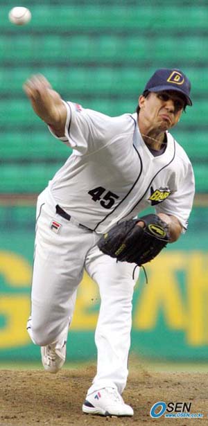 지난 20일 사직경기에 이어 엿새만에 다시 만난 손민한과 리오스의 투구 패턴을 두산과 롯데 타자들은 상당히 연구한 듯 했다. 양팀 타선 모두 선발 투수가 가장 취약한 시간인 1회부터 두 토종-용병 에이스를 매섭게 공략했지만 손민한이 입은 상처가 훨씬 더 컸다. 26일 잠실구장에서 벌어진 롯데-두산의 시즌 14차전에서 방어율 1위 손민한을 초반에 무너뜨린 두산이 '후반기 에이스' 리오스의 6⅔이닝 7피안타 2볼넷 9탈삼진 3실점으로 이를 지켜내 5-3 두점차 승리를 거뒀다. 4연승을 달린 리오스는 두산 이적후 6승째(1패). 시즌 20승까지 갈길 바쁜 손민한에게 3연패를 안긴 두산은 8월 들어 두번째 5연승의 신바람을 냈다. 두산 타자들은 손민한의 변화구를 집중적으로 노리며 1회말부터 집중타를 퍼부었다. 전상렬의 우중간 2루타를 시작으로 임재철-안경현-김동주까지 4타자 연속 안타에 이어 홍성흔의 희생 플라이로 순식간에 3점을 뽑아냈다. 두산은 2회에도 김창희의 3루 베이스를 맞고 튀는 내야안타로 만든 1사 1,2루에서 안경현이 손민한을 구원한 이명우를 상대로 우전 안타로 터뜨려 한점을 달아났고, 3회에도 김창희의 적시타로 착실하게 점수를 보태갔다. 리오스도 불안하게 출발했지만 유격수 손시헌의 결정적인 호수비 하나로 중심을 잡았다. 1회초 톱타자 박기혁에게 2루타, 신명철에게 우전 적시타를 맞아 먼저 한점을 내준 데 이어 이대호에게도 안타를 맞아 1사 1,3루에 몰렸지만 펠로우의 2루 베이스 쪽으로 흐르는 안타성 타구를 어느새 나타난 손시헌이 잡아 백토스로 2루수에게 송구, 6-4-3의 병살 플레이를 만들어냈다. 안정을 찾은 리오수는 2,3회와 5회를 삼자범퇴시키며 순항하다 6회 고비를 맞았다. 박기혁과 이대호에게 안타를 맞은 뒤 펠로우에게 먼저 투스트라이크를 잡고도 볼넷을 내줘 2사 만루에 몰린 것. 대타 최준석에게 2루 베이스를 꿰뚫는 2타점 적시타를 맞은 리오스는 그러나 손인호를 2루 플라이로 잡고 상황을 마무리지었다. 7회 2사에서 리오스에게서 마운드를 이어받은 이재우는 7회와 8회 거듭 주자를 1,2루에 내보내는 등 불안한 모습을 보였지만 실점하지 않았고 9회를 정재훈이 무실점으로 마무리, 26세이브째를 따냈다. 손민한은 2회 1사 1,2루에서 강판해 지난 2001년 7월 8일 광주 해태전(⅔이닝 5실점) 이후 4년만에 최소 이닝 강판의 쓴맛을 봤다. 리오스와 리턴매치에서 또다시 고개를 떨군 손민한은 최근 3경기 연속 패전으로 7패째(16승)를 당해 20승 도전에 급브레이크가 걸렸다. 공격에선 안경현과 김동주가 2안타씩 날리며 3타점을 합작, 5연승의 수훈갑이 됐다. 잠실=이종민 기자 mini@osen.co.kr [Copyright ⓒ OSEN(www.osen.co.kr) 무단전재 및 재배포 금지]