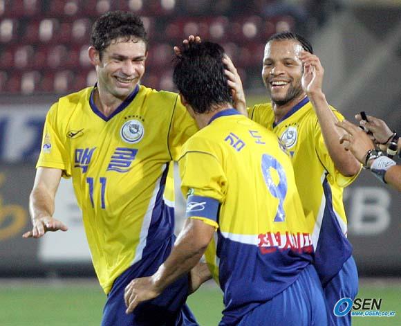 31일 성남 제2종합운동장에서 벌어진 성남 일화와 인천 유나이티드의 경기 후반 성남의 김도훈이 세 번째 골을 성공시켜 개인 통산 최다인 113골에 해트트릭까지 수립한 뒤 팀 동료 모따(왼쪽),두두와 기쁨을 나누고 있다./성남=손용호 기자 spjj@osen.co.kr [Copyright ⓒ OSEN(www.osen.co.kr) 무단전재 및 재배포 금지]