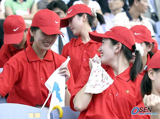 제16회 아시아육상선수권대회 첫 날 경기가 1일 인천 문학 월드컵경기장에서 열렸다. 북측 청년학생협력단원들이 잠시 응원을 쉬는 틈을 이용해 손수건으로 땀을 닦으며 즐겁게 이야기를 나누고 있다./인천=주지영 기자 jj0jj0@osen.co.kr [Copyright ⓒ OSEN(www.osen.co.kr) 무단전재 및 재배포 금지]