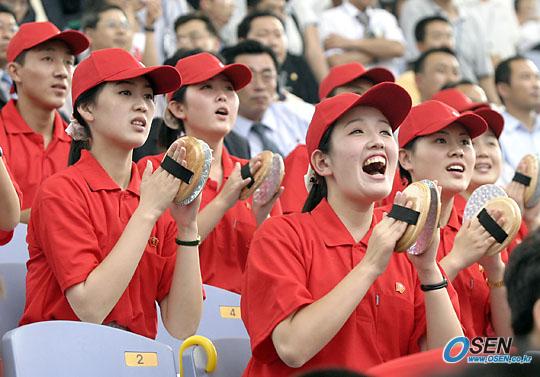 제16회 아시아육상선수권대회 첫 날 경기가 1일 인천 문학 월드컵경기장에서 열렸다. 여자 1만m 경기서 북한의 간판 스타 함봉실이 역주하자 북측 청년학생협력단원들이 환호하며 성원하고 있다./인천=주지영 기자 jj0jj0@osen.co.kr [Copyright ⓒ OSEN(www.osen.co.kr) 무단전재 및 재배포 금지]