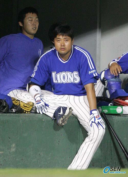 3일 잠실야구장에서 벌어진 LG 트윈스와 삼성 라이온즈의 경기서 LG가 삼성에 6-3으로 재역전승을 거뒀다. 좌완 왈론드가 LG 선발로 나와 벤치를 지키던 양준혁이 덕아웃에 걸터 앉아 대타로 기용되기를 기다리고 있다. 양준혁은 결국 9회초 조동찬 대신 선두 타자로 기용됐으나 경헌호를 상대로 2루수 땅볼로 물러났다. /잠실=손용호 기자 spjj@osen.co.kr [Copyright ⓒ OSEN(www.osen.co.kr) 무단전재 및 재배포 금지]