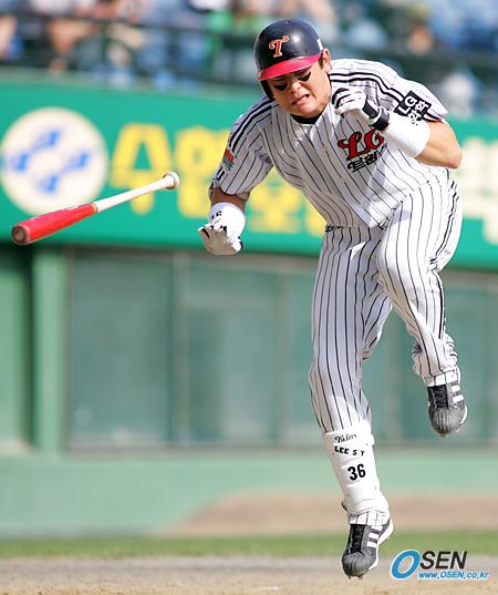 4일 LG 트윈스와 삼성 라이온즈의 잠실 경기 LG의 4회말 무사 1,2루서 이성렬이 팔꿈치에 하리칼라의 투구에 맞은 뒤 펄쩍 뛰며 아파하고 있다./잠실= 주지영 기자 jj0jj0@osen.co.kr [Copyright ⓒ OSEN(www.osen.co.kr) 무단전재 및 재배포 금지]