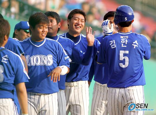 기뻐하는 삼성,'점수차가 너무 큰가?'