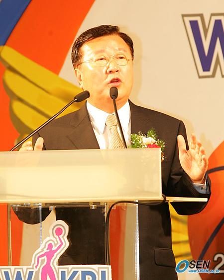 5일 낮 서울 웨스틴 조선호텔 그랜드볼룸에서 신한은행배 2005 여자프로농구 여름 정규리그 시상식이 열렸다. 김원길 WKBL 김원길 총재가 시상에 앞서 인사말을 하고 있다./주지영 기자 jj0jj0@osen.co.kr [Copyright ⓒ OSEN(www.osen.co.kr) 무단전재 및 재배포 금지]