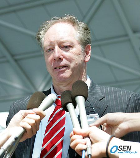 한국 축구대표팀 감독을 사임한 본프레레 감독이 8일 낮 12시 45분 인천공항발 네델란드 항공편으로 한국을 떠났다. 본프레레 감독이 국내 언론들과 마지막으로 인터뷰를 갖는 도중 아쉬운 미소를 머금고 있다./인천=주지영 기자 jj0jj0@osen.co.kr [Copyright ⓒ OSEN(www.osen.co.kr) 무단전재 및 재배포 금지]