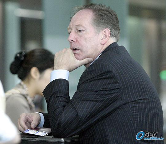 한국 축구대표팀 감독을 사임한 본프레레 감독이 8일 낮 12시 45분 인천공항발 네델란드 항공편으로 한국을 떠났다. 본프레레 감독이 탑승 수속을 받으며 뭔가 생각에 잠겨 있다./인천=주지영 기자 jj0jj0@osen.co.kr [Copyright ⓒ OSEN(www.osen.co.kr) 무단전재 및 재배포 금지]