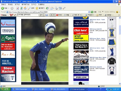 잉글랜드 프리미어리그 토튼햄 핫스퍼의 이영표가 입단 후 첫 훈련을 가졌다. 토튼햄 핫스퍼는 8일(이하 한국시간) 구단 공식 홈페이지(www.spurs.co.uk)를 통해 토튼햄 유니폼을 입은 이영표의 훈련 사진 6장을 '훈련 중인 뉴보이'라는 제목으로 소개했다. 이날 첫 팀 훈련을 가진 이영표는 9일 새벽 정식 입단식과 기자회견을 갖고 본격적인 잉글랜드 프로생활을 시작하게 된다. 또 이영표는 오는 10일 밤 화이트 하트 레인 구장에서 갖는 리버풀과의 홈경기에서 데뷔전을 치른다. 토튼햄 핫스퍼서 첫 훈련을 가진 이영표의 사진을 담은 구단 공식 홈페이지 박상현 기자 tankpark@osen.co.kr [Copyright ⓒ OSEN(www.osen.co.kr) 무단전재 및 재배포 금지]